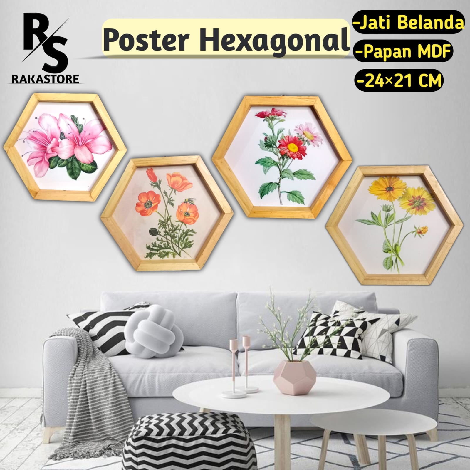 Poster Hexagonal Bunga Aesthetic